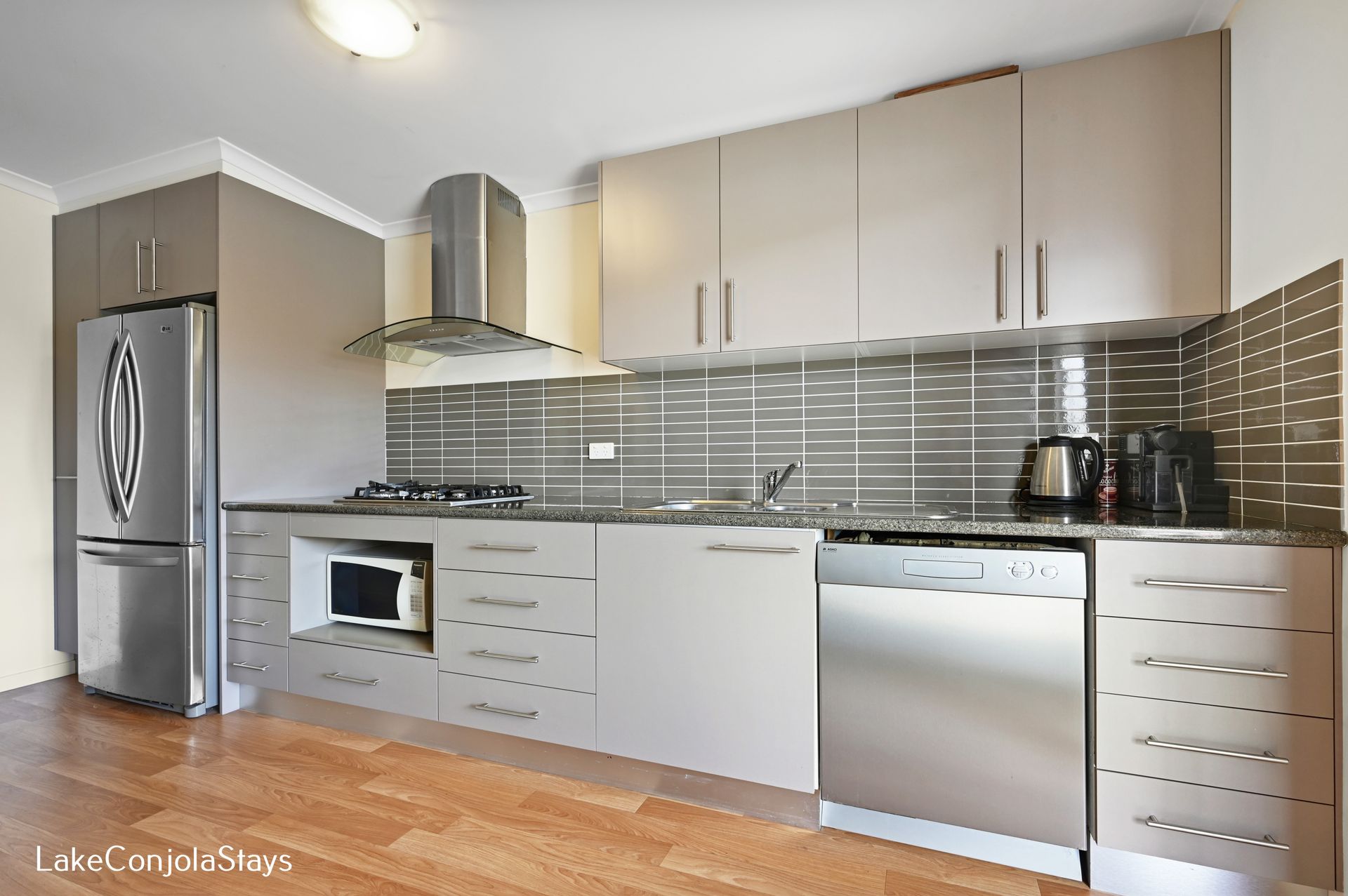 Our well-appointed kitchen lets you feed the crew, serving up meals straight to the balcony for an alfresco experience with nature's finest backdrop - The Lake.